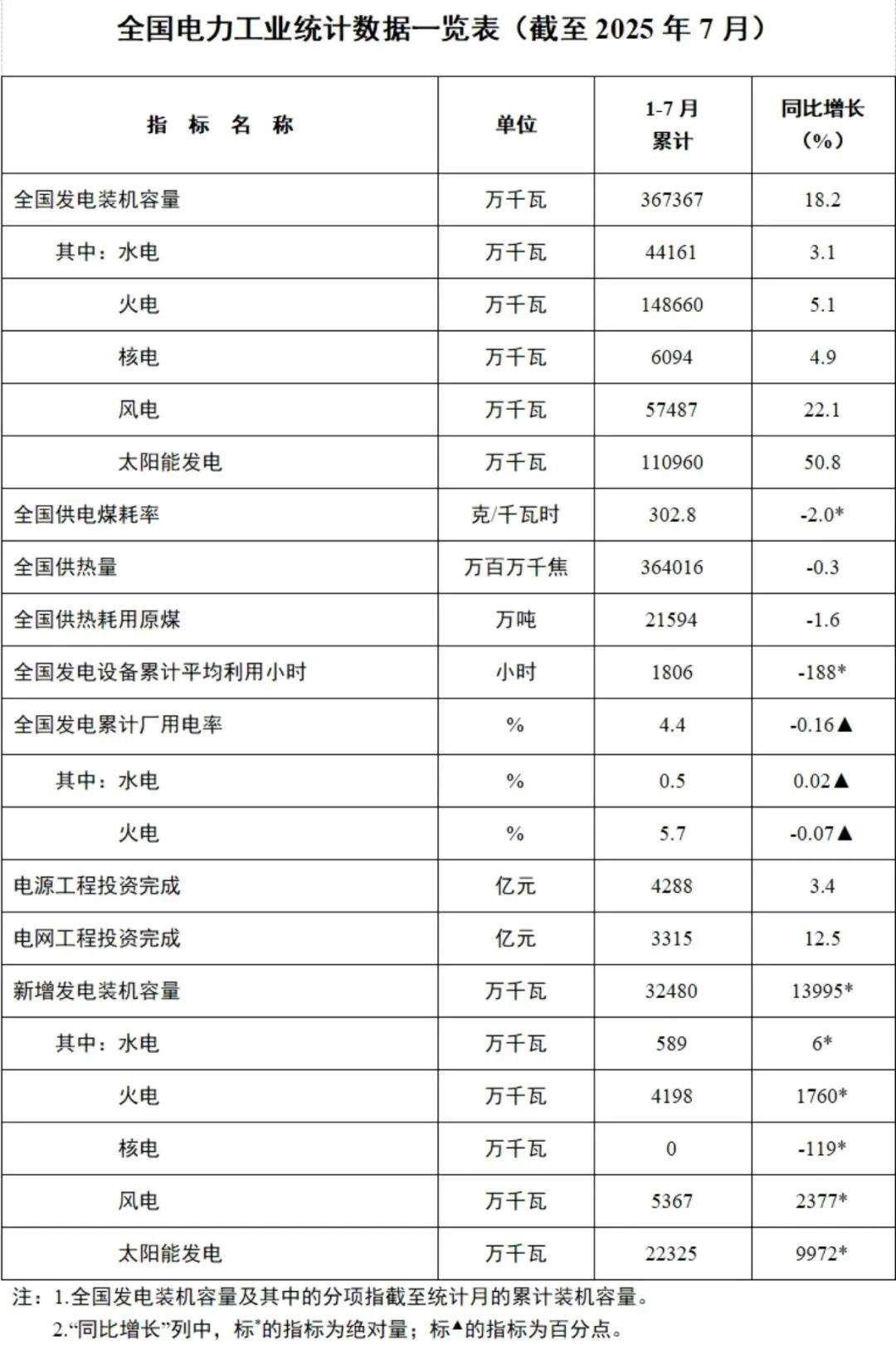 8月23日,國家能源局發(fā)布1—7月份全國電力工業(yè)統(tǒng)計數(shù)據(jù)。